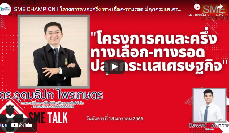 SME CHAMPION l โครงการคนละครึ่ง ทางเลือก-ทางรอด ปลุกกระแสเศรษฐกิจ ติดตามข่าวสารการส่งเสริม SME กับ ดร.อุดมธิปก ไพรเกษตร กรรมการผู้จัดการ บริษัท ดิจิทัลบิสิเนส คอนซัลท์ จำกัด และเลขาธิการสมาพันธ์เอสเอ็มอีไทย ดำเนินรายการโดย ปิยะพงษ์ เคนทวาย [18 มกราคม 2565] #SME_Champion, #วิทยุราชมงคลธัญบุรี, #SME, #เอสเอ็มอี, ...