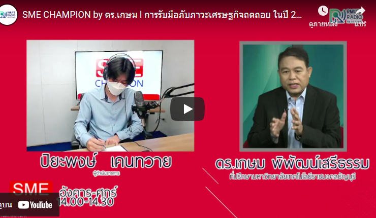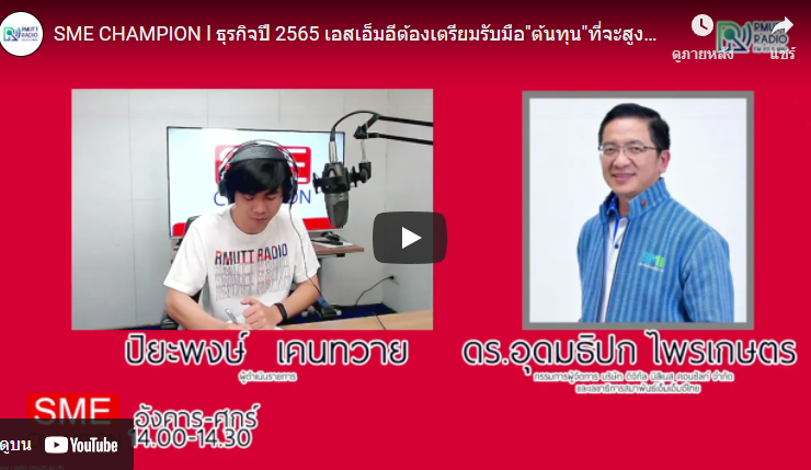 SME CHAMPION l ธุรกิจปี 2565 เอสเอ็มอีต้องเตรียมรับมือ “ต้นทุน” ที่จะสูงขึ้น สวนทางกำลังซื้อผู้บริโภค ติดตามข่าวสารการส่งเสริม SME กับ ดร.อุดมธิปก ไพรเกษตร กรรมการผู้จัดการ บริษัท ดิจิทัลบิสิเนส คอนซัลท์ จำกัด และเลขาธิการสมาพันธ์เอสเอ็มอีไทย ดำเนินรายการโดย ปิยะพงษ์ เคนทวาย [30 ธันวาคม 2564] SME Champion, วิทยุราชมงคลธัญบุรี, SME, เอสเอ็มอี, ...