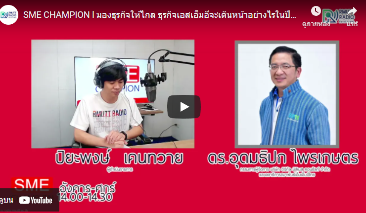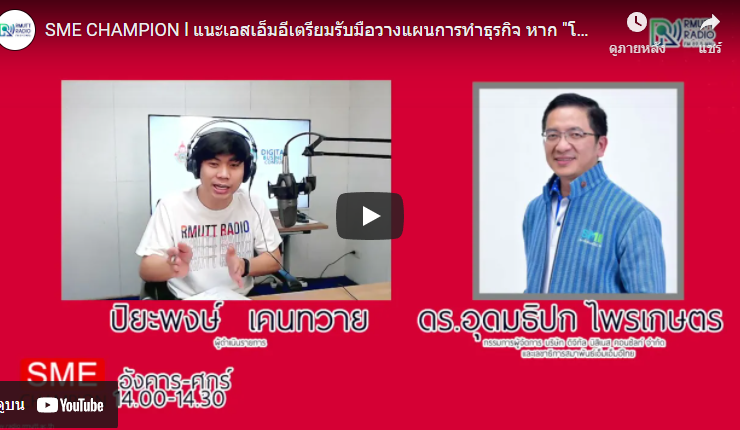 SME CHAMPION l มองธุรกิจให้ไกล ธุรกิจเอสเอ็มอีจะเดินหน้าอย่างไรในปี 2565 ติดตามข่าวสารการส่งเสริม SME กับ ดร.อุดมธิปก ไพรเกษตร กรรมการผู้จัดการ บริษัท ดิจิทัลบิสิเนส คอนซัลท์ จำกัด และเลขาธิการสมาพันธ์เอสเอ็มอีไทย . ดำเนินรายการโดย ปิยะพงษ์ เคนทวาย [31 ธันวาคม 2564] SME Champion, วิทยุราชมงคลธัญบุรี, SME, เอสเอ็มอี, ...
