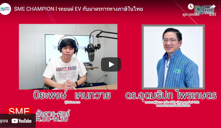 SME CHAMPION l รถยนต์ EV กับมาตรการทางภาษีในไทย ติดตามข่าวสารการส่งเสริม SME กับ ดร.อุดมธิปก ไพรเกษตร กรรมการผู้จัดการ บริษัท ดิจิทัลบิสิเนส คอนซัลท์ จำกัด และเลขาธิการสมาพันธ์เอสเอ็มอีไทย ดำเนินรายการโดย ปิยะพงษ์ เคนทวาย [29 ธันวาคม 2564] SME Champion, วิทยุราชมงคลธัญบุรี, SME, เอสเอ็มอี, ...