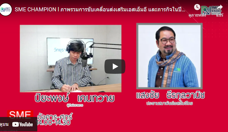 SME CHAMPION l ภาพรวมการขับเคลื่อนส่งเสริมเอสเอ็มอี และภารกิจในปี 2565 ในช่วง SME TALK วันนี้คุยกับคุณแสงชัย ธีรกุลวาณิช (ประธานสมาพันธ์เอสเอ็มอีไทย) [29 ธันวาคม 2564] ติดตามข่าวสารการสัมภาษณ์จากสมาพันธ์เอสเอ็มอีไทย ทางวิทยุราชมงคลธัญบุรี เวลา 14.20-14.30 น. ทุกวันพุธ ดำเนินรายการโดย ปิยะพงษ์ เคนทวาย SME Champion, วิทยุราชมงคลธัญบุรี, SME, เอสเอ็มอี, สมาพันธ์เอสเอ็มอีไทย, ...