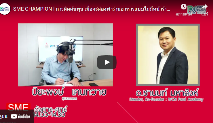 SME CHAMPION l การคิดต้นทุน เมื่อจะต้องทำร้านอาหารแบบไม่มีหน้าร้าน ผ่านบริการ Delivery ในช่วง SME TALK วันนี้คุยกับ อ.ชานนท์ มหาสิงห์ Director Co-Founder, WCN Food Academy . เวลา 14.20-14.30 น. ติดตามบทวิเคราะห์จาก อ.ชานนท์ มหาสิงห์ ได้ทุกวันศุกร์ ทางวิทยุราชมงคลธัญบุรี ดำเนินรายการโดย และปิยะพงษ์ เคนทวาย [31 ธันวาคม 2564] SME Champion, วิทยุราชมงคลธัญบุรี, SME, เอสเอ็มอี, ...