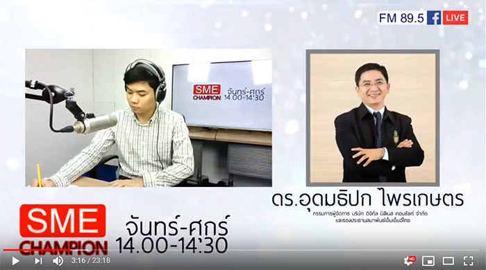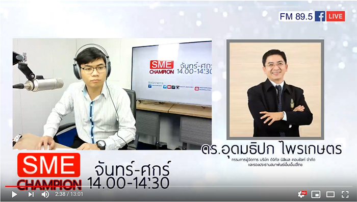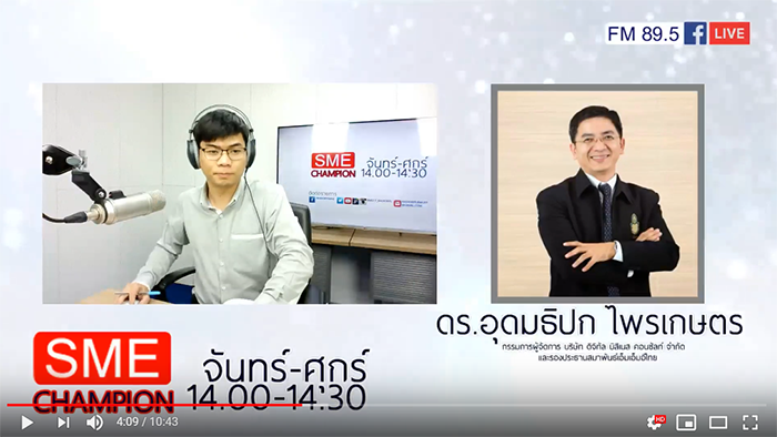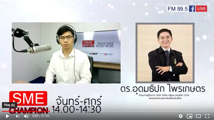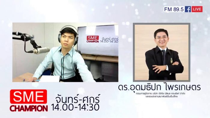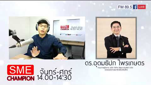 SME CHAMPION l โอกาสของ SME สู่การเป็น วิสาหกิจเพื่อสังคม ร่วมวิเคราะห์โดย ดร.อุดมธิปก ไพรเกษตร กรรมการผู้จัดการบริษัท ดิจิทัล บิสิเนสคอนซัลท์ จำกัด และรองประธานสมาพันธ์เอสเอ็มอีไทย และ ปิยะพงษ์ เคนทวาย ในรายการ SME Champion 14.00-14.30 ทางสถานีวิทยุกระจายเสียงมหาวิทยาลัยเทคโนโลยีราชมงคลธัญบุรี FM 89.5 Mhz ...