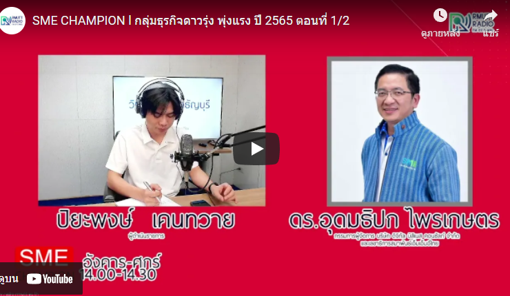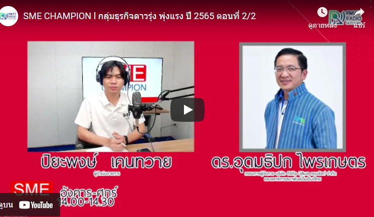 SME CHAMPION l กลุ่มธุรกิจดาวรุ่ง พุ่งแรง ปี 2565 ตอนที่ 2/2 . ติดตามข่าวสารการส่งเสริม SME กับ ดร.อุดมธิปก ไพรเกษตร กรรมการผู้จัดการ บริษัท ดิจิทัลบิสิเนส คอนซัลท์ จำกัด และเลขาธิการสมาพันธ์เอสเอ็มอีไทย . ดำเนินรายการโดย ปิยะพงษ์ เคนทวาย [22 ธันวาคม 2564] . SME_Champion, วิทยุราชมงคลธัญบุรี, SME, เอสเอ็มอี, ...