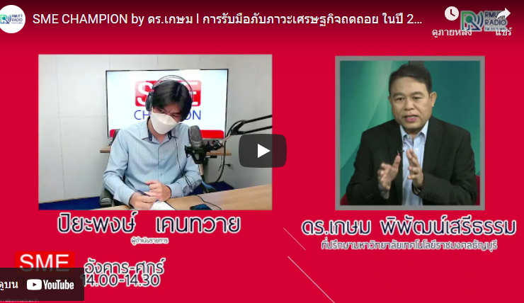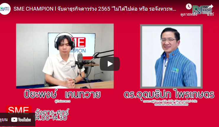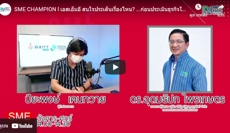 SME CHAMPION l จับตาธุรกิจดาวร่วง 2565 “ไม่ได้ไปต่อ หรือ รอจังหวะพลิกฟื้น” ติดตามข่าวสารการส่งเสริม SME กับ ดร.อุดมธิปก ไพรเกษตร กรรมการผู้จัดการ บริษัท ดิจิทัลบิสิเนส คอนซัลท์ จำกัด และเลขาธิการสมาพันธ์เอสเอ็มอีไทย ดำเนินรายการโดย ปิยะพงษ์ เคนทวาย [23 ธันวาคม 2564] SME_Champion, วิทยุราชมงคลธัญบุรี, SME, เอสเอ็มอี, ...