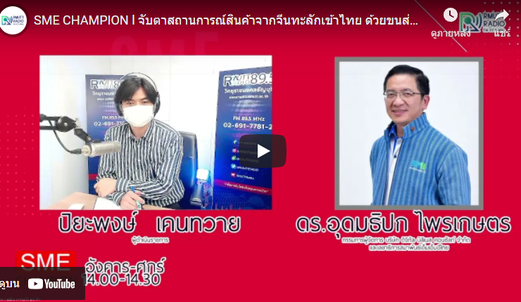 SME CHAMPION l จับตาสถานการณ์สินค้าจากจีนทะลักเข้าไทย ด้วยขนส่งผ่านรถไฟความเร็ว ลาว-จีน . ติดตามข่าวสารการส่งเสริม SME กับ ดร.อุดมธิปก ไพรเกษตร กรรมการผู้จัดการ บริษัท ดิจิทัลบิสิเนส คอนซัลท์ จำกัด และเลขาธิการสมาพันธ์เอสเอ็มอีไทย . ดำเนินรายการโดย ปิยะพงษ์ เคนทวาย [16 ธันวาคม 2564] SME_Champion, วิทยุราชมงคลธัญบุรี, SME, เอสเอ็มอี, ...