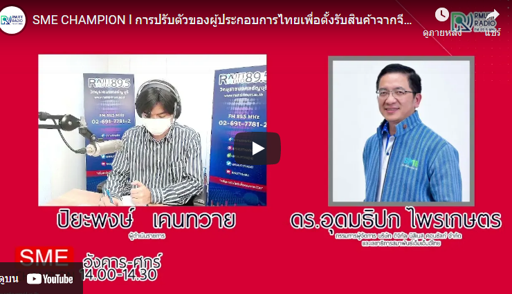 SME CHAMPION l การปรับตัวของผู้ประกอบการไทยเพื่อตั้งรับสินค้าจากจีนที่จะมีผลต่อโอกาสทางธุรกิจในไทย . ติดตามข่าวสารการส่งเสริม SME กับ ดร.อุดมธิปก ไพรเกษตร กรรมการผู้จัดการ บริษัท ดิจิทัลบิสิเนส คอนซัลท์ จำกัด และเลขาธิการสมาพันธ์เอสเอ็มอีไทย . ดำเนินรายการโดย ปิยะพงษ์ เคนทวาย [17 ธันวาคม 2564] SME_Champion, วิทยุราชมงคลธัญบุรี, SME, เอสเอ็มอี, ...