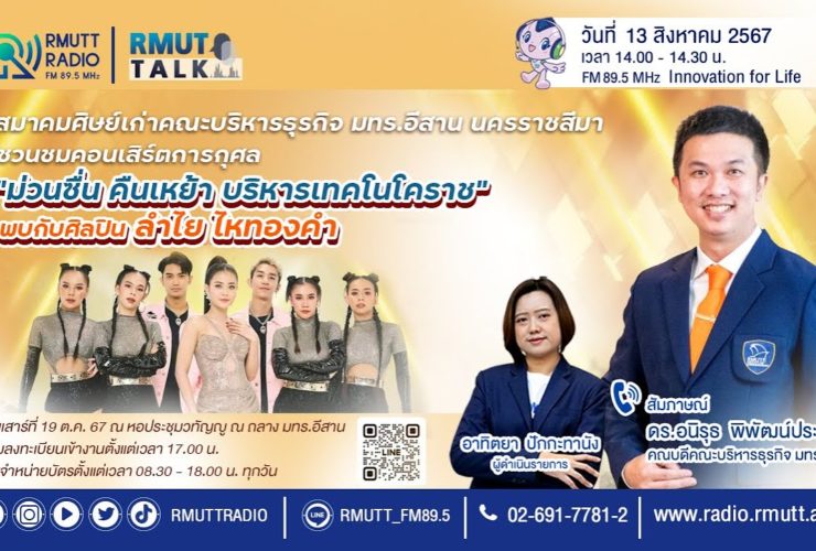 RMUT TALK l สมาคมศิษย์เก่าคณะบริหารธุรกิจ มทร.อีสาน นครราชสีมา ชวนชมคอนเสิร์ตการกุศล “ม่วนซื่น คืนเหย้า บริหารเทคโนโคราช” กับศิลปิน ลำไย ไหทองคำ 19 ต.ค.นี้ สัมภาษณ์ ดร.อนิรุธ พิพัฒน์ประภา คณบดีคณะบริหารธุรกิจ สมาคมศิษย์เก่าคณะบริหารธุรกิจ มหาวิทยาลัยเทคโนโลยีราชมงคลอีสาน นครราชสีมา ขอเชิญชวนศิษย์เก่า ศิษย์ปัจจุบัน หรือผู้ที่สนใจ ร่วมกิจกรรมคอนเสิร์ตการกุศล ในการจัดหารายได้จัดซื้ออุปกรณ์ประกอบการศึกษา ให้กับคณะบริหารธุรกิจ มทร.อีสาน นครราชสีมา วันเสาร์ที่ 19 ตุลาคม 2567 ณ หอประชุมวทัญญู ณ ถลาง มหาวิทยาลัยเทคโนโลยีราชมงคลอีสาน เริ่มลงทะเบียนเข้างานตั้งแต่เวลา ...