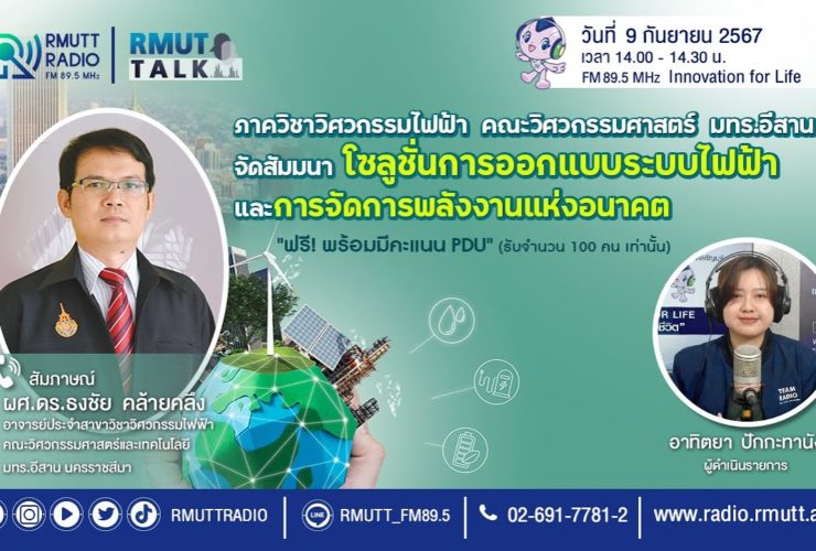 RMUT TALK l ภาควิชาวิศวกรรมไฟฟ้า คณะวิศวกรรมศาสตร์ มทร.อีสาน จัดสัมมนาโซลูชั่นการออกแบบระบบไฟฟ้า และการจัดการพลังงานแห่งอนาคต สัมภาษณ์ ผศ.ดร. ธงชัย คล้ายคลึง อาจารย์ประจำสาขาวิชาวิศวกรรมไฟฟ้า คณะวิศวกรรมศาสตร์และเทคโนโลยี มทร.อีสาน นครราชสีมา สาขาวิศวกรรมไฟฟ้า มทร.อีสาน นครราชสีมา จัดกิจกรรม “สัมมนาโซลูชั่นการออกแบบระบบไฟฟ้าและจัดการพลังงานแห่งอนาคต (EIT)” “ฟรี! พร้อมมีคะแนน PDU” (รับจำนวน 100 คน เท่านั้น) ● สาขาวิศวกรรมไฟฟ้า คณะวิศวกรรมศาสตร์และเทคโนโลยี ร่วมกับบริษัทชไนเดอร์ อิเล็คทริค ● ขอเรียนเชิญวิศวกรผู้ออกแบบระบบไฟฟ้าและงานระบบที่เกี่ยวข้อง เข้าร่วมกิจกรรม “สัมมนาโซลูชั่นการออกแบบระบบไฟฟ้าและจัดการพลังงานแห่งอนาคต (EIT)” วันที่ ...