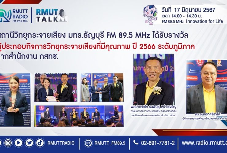 RMUT TALK l สถานีวิทยุกระจายเสียง มทร.ธัญบุรี ได้รับรางวัลผู้ประกอบกิจการวิทยุกระจายเสียงที่มีคุณภาพ ประจำปี 2566 ระดับภูมิภาค จากสำนักงาน กสทช. สัมภาษณ์ พลอากาศโท ธนพันธุ์ หร่ายเจริญ กรรมการกิจการกระจายเสียง กิจการโทรทัศน์ และกิจการโทรคมนาคมแห่งชาติ หรือ กสทช. ดร.ธนกร ศรีสุขใส ผู้จัดการกองทุนพัฒนาสื่อปลอดภัยและสร้างสรรค์ สถานีวิทยุ มทร.ธัญบุรี ได้รับรางวัล “ผู้ประกอบกิจการวิทยุกระจายเสียงที่มีคุณภาพ ประจำปี 2566 ระดับภูมิภาค” จากสำนักงาน กสทช. วันที่ 10 มิถุนายน 2567 สำนักงานคณะกรรมการกิจการกระจายเสียง กิจการโทรทัศน์ และกิจการโทรคมนาคมแห่งชาติ (สำนักงาน ...
