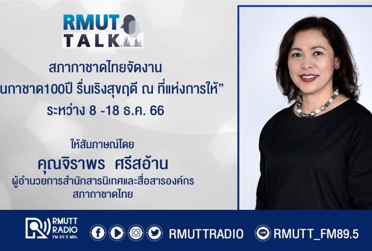 RMUT TALK l สภากาชาดไทยจัดงาน “วันกาชาด100ปี รื่นเริงสุขฤดี ณ ที่แห่งการให้ ระหว่าง 8 – 18 ธค 66 สัมภาษณ์ นางจิราพร ศรีสอ้าน ผู้อำนวยการสำนักสารนิเทศและสื่อสารองค์กร สภากาชาดไทย “งานวันกาชาด ๑๐๐ ปี พุทธศักราช ๒๕๖๖” รื่นรมย์สุขฤดี ณ ที่แห่งการให้ #RedCrossFairCenturyOfCharity ภายใต้คอนเซ็ปต์ “กาลก่อน • กาลนี้ • กาลหน้า” สำราญใจในวันวานสู่งานวันกาชาด ๑๐๐ ปี พร้อมเชิญชวนทุกท่านที่มาเที่ยวงาน ในปีนี้ “นุ่งโจงห่มไทยเที่ยวงานวันกาชาด ...