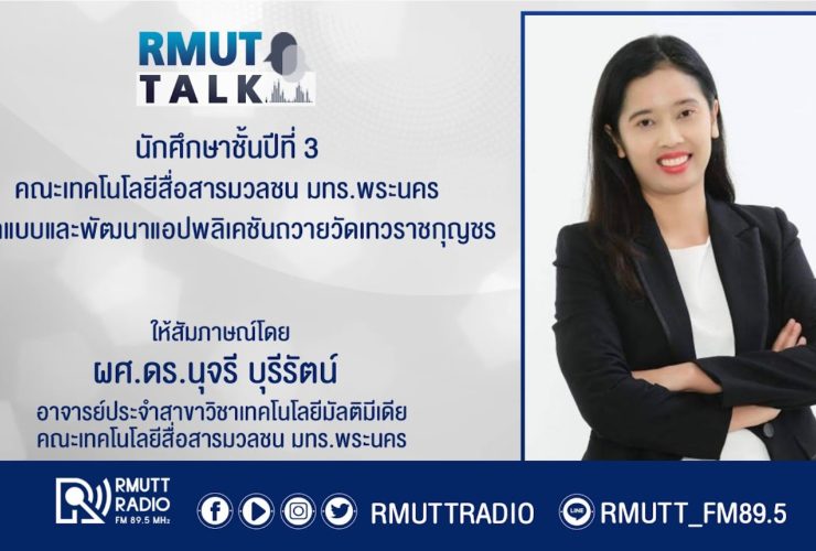 RMUT TALK l นักศึกษาชั้นปีที่ 3 คณะเทคโนโลยีสื่อสารมวลชน มทร.พระนคร ออกแบบและพัฒนาแอปพลิเคชันถวายวัดเทวราชกุญชร สัมภาษณ์ ผู้ช่วยศาสตราจารย์ ดร.นุจรี บุรีรัตน์ อาจารย์ประจำสาขาวิชาเทคโนโลยีมัลติมีเดีย คณะเทคโนโลยีสื่อสารมวลชน มทร.พระนคร นักศึกษาชั้นปีที่ 3 คณะเทคโนโลยีสื่อสารมวลชน มทร.พระนคร ออกแบบและพัฒนาแอปพลิเคชันถวายวัดเทวราชกุญชร ผู้สื่อข่าวรายงานว่า พระธรรมวชิราภรณ์ เจ้าอาวาสวัดเทวราชกุญชร วรวิหาร เจ้าคณะภาค 13 กรรมการมหาเถรสมาคม (มส.) อนุโมทนาแด่ ดร.ก้องเกียรติ มหาอินทร์ ผู้ช่วยอธิการบดีฝ่ายศิลปวัฒนธรรม และ ผศ.ดร.นุจรี บุรีรัตน์ และคณะ ในการถวายแอปพลิเคชันวัดเทวราชกุญชรวรวิหาร ซึ่งออกแบบและพัฒนาโดยนักศึกษาชั้นปีที่ 3 สาขาวิชาเทคโนโลยีมัลติมีเดีย ...