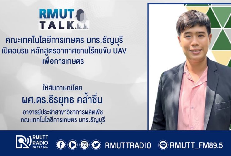 RMUT TALK l คณะเทคโนโลยีการเกษตร มทร.ธัญบุรี เปิดอบรม หลักสูตรอากาศยานไร้คนขับ UAV เพื่อการเกษตร สัมภาษณ์ สัมภาษณ์ ผศ.ดร.ธีรยุทธ คล้ำชื่น อาจารย์ประจำสาขาวิชาการผลิตพืช คณะเทคโนโลยีการเกษตร มทร.ธัญบุรี คณะเทคโนโลยีการเกษตร มทร.ธัญบุรี เปิดรับสมัครผู้สนใจเข้าร่วมอบรมหลักสูตร อากาศยานไร้คนขับ UAV เพื่อการเกษตร (Drone for Agriculture) ในวันเสาร์ที่ 16 ธันวาคม 2566 ณ คณะเทคโนโลยีการเกษตร มหาวิทยาลัยเทคโนโลยีราชมงคลธัญบุรี ศูนย์รังสิต ผู้เข้าร่วมอบรมจะได้รับความรู้เกี่ยวกับ กฎหมายการบิน และประกาศต่างๆ ที่เกี่ยวข้องกับอากาศยานไร้คนขับ ฝึกปฏิบัติด้วยเครื่องการจำลองการบิน ฝึกปฏิบัติการบินพื้นฐานและการแก้ปัญหากรณีเหตุฉุกเฉิน ฝึกปฏิบัติการบินโหมด ...