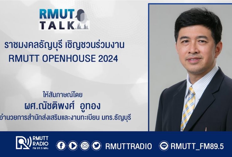 RMUT TALK l ราชมงคลธัญบุรี เชิญชวนร่วมงาน RMUTT OPENHOUSE 2024 สัมภาษณ์ ผู้ช่วยศาสตราจารย์ ณัชติพงศ์ อูทอง ผู้อำนวยการสำนักส่งเสริมและงานทะเบียน มทร.ธัญบุรี เปิดบ้านราชมงคลธัญบุรี จัดหนักจัดเต็มสามวันด้วยกัน ระหว่างวันที่ 30 พฤศจิกายน – 2 ธันวาคม 2566 จึงขอเชิญชวนประชาชนที่สนใจ นักเรียน นักศึกษา ผู้ปกครอง ครู อาจารย์ได้มาร่วมเป็นส่วนหนึ่งในการเปิดประตูสู่ มทร.ธัญบุรี เพื่อสัมผัส ทดลองและเจาะลึกเกี่ยวกับการเรียนการสอนของทั้ง 12 คณะในมหาวิทยาลัย ครบถ้วนทุกหลักสูตร โดยเฉพาะอย่างยิ่งในหลักสูตรที่รองรับอุตสาหกรรมสมัยใหม่และอุตสาหกรรมในอนาคต ซึ่งในปีการศึกษา 2567 นี้ มทร.ธัญบุรี ...