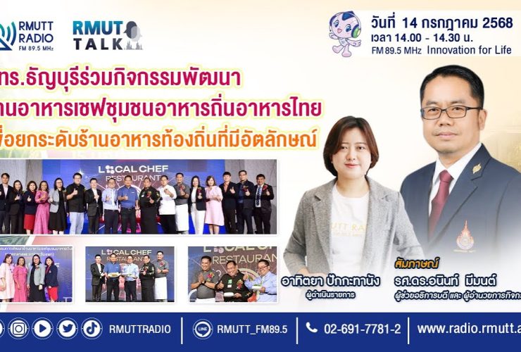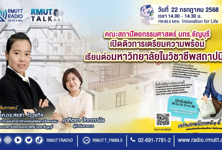 RMUT TALK l แนวนโยบายและการปรับตัวตามเทรนด์การเรียนยุค AI ปีการศึกษา 2568 สัมภาษณ์ รศ.ดร.สมหมาย ผิวสอาด อธิการบดี มทร.ธัญบุรี ประเด็นการพูดคุยที่น่าสนใจ อาทิ เป้าหมายของ มทร.ธัญบุรี ในปีการศึกษา 2568, การหลักสูตรของมหาวิทยาลัยในยุค AI, ความสนใจในการเข้าศึกษาต่อของคนรุ่นใหม่, การช่วยเหลือและสนับสนุนนักศึกษาในภาวะเศรษฐกิจที่น่ากังวล และความคืบหน้าการออกนอกระบบของมหาวิทยาลัย รับฟังได้ทาง FM 89.5 MHz. Innovation for Life วิทยุราชมงคลธัญบุรี ออกอากาศ วันที่ 8 กรกฎาคม 2568 เวลา 14.00 – 14.30 ...