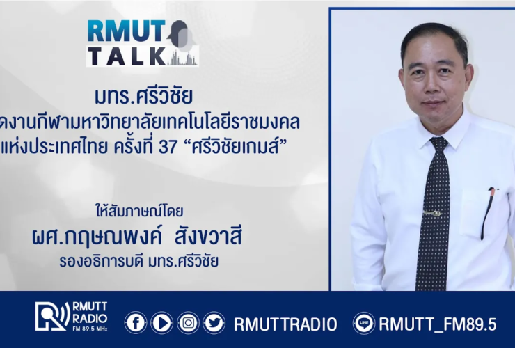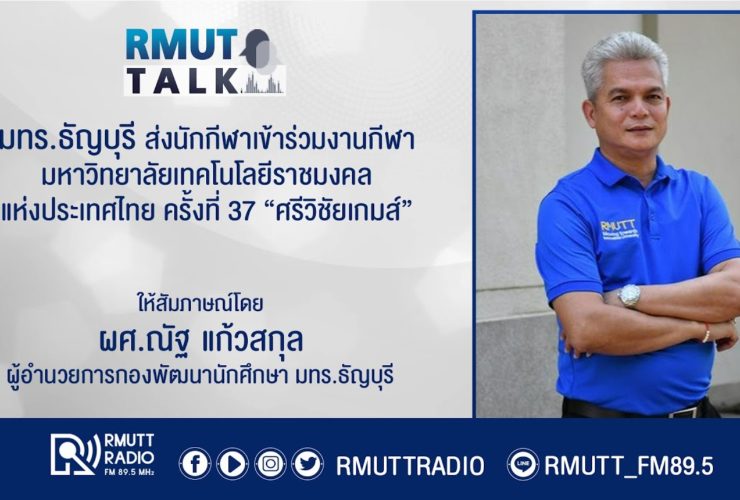 RMUT TALK l มทร.ธัญบุรี ส่งนักกีฬาเข้าร่วมงาน กีฬามหาวิทยาลัยเทคโนโลยีราชมงคลแห่งประเทศไทย ครั้งที่ 37 “ศรีวิชัยเกมส์” . ช่วงที่ 2 สัมภาษณ์ ผศ.ณัฐ แก้วสกุล ผู้อำนวยการกองพัฒนานักศึกษา มทร.ศรีวิชัย พร้อมการจัดการแข่งขันกีฬามหาวิทยาลัยเทคโนโลยีราชมงคลแห่งประเทศไทย ครั้งที่ 37 ในชื่อ ศรีวิชัยเกมส์ ภายใต้ คำขวัญประจำการแข่งขัน “เกมส์แห่ง พลังปัญญา สามัคคี” ระหว่างวันที่ 6 -10 กุมภาพันธ์ 2566 ณ มหาวิทยาลัยเทคโนโลยีราชมงคลศรีวิชัย ดูรายละเอียดเพิ่มเติมที่ https://srivijayagames.rmutsv.ac.th/9rmut . รับฟังรายการได้ทาง FM 89.5 ...