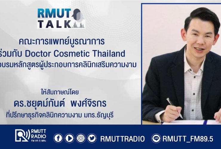 RMUT TALK l คณะการแพทย์บูรณาการ ร่วมกับ Doctor Cosmetic Thailand เปิดอบรมหลักสูตรผู้ประกอบการคลินิกเสริมความงาม . สัมภาษณ์ ดร.ชยุตม์กันต์ พงศ์จิรกร ที่ปรึกษาธุรกิจคลินิกความงาม มทร.ธัญบุรี คณะการแพทย์บูรณาการ ร่วมกับ Doctor Cosmetic Thailand เปิดอบรมหลักสูตรผู้ประกอบการคลินิกเสริมความงาม . อยากเป็นผู้ประกอบการคลินิกเสริมความงาม อยากเปิดคลินิกเสริมความงามต้องลงทุนเท่าไหร่เริ่มต้นอย่างไร เรามีคำตอบในหลักสูตรเตรียมความพร้อมผู้ประกอบการคลินิกเสริมความงาม หลักสูตรร่วมสถานประกอบการ หลักสูตรแรกและหลักสูตรเดียวในไทยภายใต้ความร่วมมือระหว่าง คณะการแพทย์บูรณาการ มทร.ธัญบุรี และ Doctor Cosmetic Thailand หลักสูตรนี้จะนำคุณสู่การเรียนรู้ มากมาย เช่น – โอกาสสำหรับธุรกิจคลินิกเสริมความงาม – การวางแผนเชิงกลยุทธ์สำหรับธุรกิจคลินิกเสริมความงาม ...