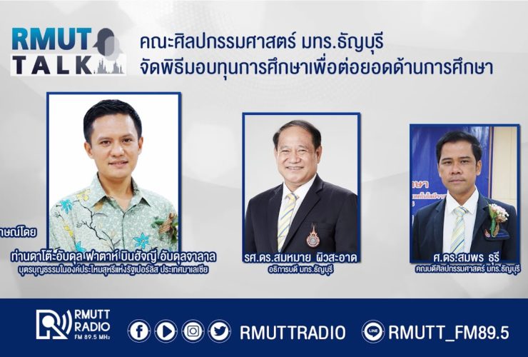 RMUT TALK l คณะศิลปกรรมศาสตร์ มทร.ธัญบุรี จัดพิธีมอบทุนการศึกษาเพื่อต่อยอดด้านการศึกษา . สัมภาษณ์ ท่านดาโต๊ะอับดุล ฟาตาห์ บินฮัจญี อับดุลจาลาล บุตรบุญธรรมในองค์ประไหมสุหรีแห่งรัฐเปอร์ลิส ประเทศมาเลเซีย รศ.ดร.สมหมาย ผิวสอาด อธิการบดี มทร.ธัญบุรี ศ.ดร.สมพร ธุรี คณบดีศิลปกรรมศาสตร์ มทร.ธัญบุรี . คณะศิลปกรรมศาสตร์ มทร.ธัญบุรี จัดพิธีมอบทุนการศึกษาเพื่อต่อยอดด้านการศึกษา เมื่อวันที่ 16 มกราคม 2566 ท่านดาโต๊ะอับดุล ฟาตาห์ บินฮัจญี อับดุลจาลาล บุตรบุญธรรมในองค์ประไหมสุหรีแห่งรัฐเปอร์ลิส ประเทศมาเลเซีย ได้มอบทุนการศึกษา 30 ทุน ให้กับนักศึกษาคณะศิลปกรรมศาสตร์ ...