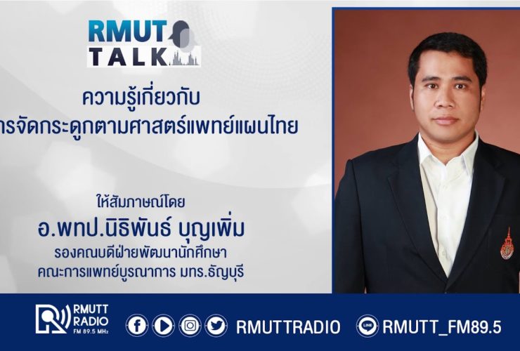 RMUT TALK l ความรู้เกี่ยวกับการจัดกระดูกตามศาสตร์แพทย์แผนไทย . สัมภาษณ์ อ.พทป.นิธิพันธ์ บุญเพิ่ม รองคณบดีฝ่ายพัฒนานักศึกษา คณะการแพทย์บูรณาการ มทร.ธัญบุรี . ในปัจจุบัน “การจัดกระดูก” เรียกได้ว่ามาแรง เป็นที่นิยมมากขึ้น โดยเฉพาะในกลุ่มคนวัยทำงาน เพื่อหวังแก้อาการออฟฟิศซินโดรม เพื่อทำความเข้าใจและสร้างความตระหนักรู้เกี่ยวกับการจัดกระดูกตามศาสตร์แพทย์แผนไทยการจัดกระดูกให้ดียิ่งขึ้นประกอบการตัดสินใจ ผู้ที่สนใจสามารถติดตามข่าวสารของ คณะการแพทย์บูรณาการ มทร.ธัญบุรี ได้ที่ www.facebook.com/IMXRMUTT หรือสอบถามเพิ่มเติมโทร 02 592 1999 . รับฟังรายการได้ทาง FM 89.5 MHz วิทยุราชมงคลธัญบุรี ออกอากาศ วันที่ 9 มกราคม 2566 เวลา ...