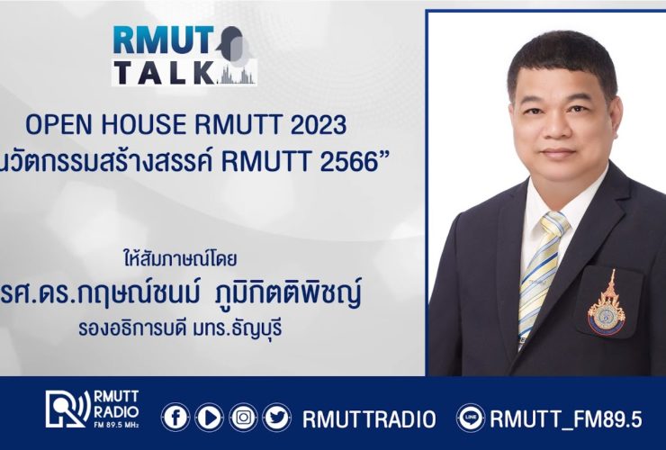 RMUT TALK l OPEN HOUSE RMUTT 2023 “นวัตกรรมสร้างสรรค์ RMUTT 2566” . สัมภาษณ์ รศ.ดร.กฤษณ์ชนม์ ภูมิกิตติพิชญ์ รองอธิการบดี มทร.ธัญบุรี . มทร.ธัญบุรี เตรียมจัดเต็มในกิจกรรมเปิดบ้านปี 2566 “นวัตกรรมสร้างสรรค์ RMUTT 2566” จาก 12 คณะ แสดงผลงานวิจัย นวัตกรรม และสิ่งประดิษฐ์ พร้อมกิจกรรมเวิร์คช็อปสัมผัสประสบการณ์การเรียนการสอนจริง บนฐานแนวคิด “มหาวิทยาลัยนวัตกรรมที่สร้างคุณค่า สู่สังคมและประเทศ” กำหนดจัดขึ้นในวันที่ 18 – 20 มกราคม 2566 ณ ...