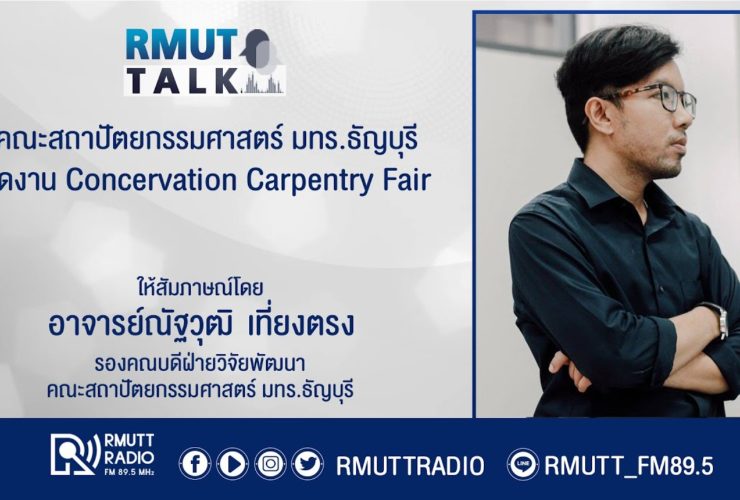 RMUT TALK l คณะสถาปัตยกรรมศาสตร์ มทร.ธัญบุรี จัดงาน Concervation Carpentry Fair 9-12 กุมภาพันธ์ 66 . สัมภาษณ์ อาจารย์ณัฐวุฒิ เที่ยงตรง รองคณบดีฝ่ายวิจัยพัฒนา สถาปัตยกรรมศาสตร์ มทร.ธัญบุรี . ภูมิปัญญางานไม้ของช่างไทยได้รับการสืบทอดจากรุ่นสู่รุ่นตั้งแต่บรรพบุรุษจนถึงปัจจุบัน ไม้ในงานสถาปัตยกรรมแฝงกายซ่อนเร้นอยู่รายล้อมรอบตัวเราภายใต้ความท้าทายของวัสดุก่อสร้างของยุคสมัยใหม่ โครงการประกวดภาพถ่ายงานสถาปัตยกรรมไม้จัดขึ้นเป็นส่วนหนึ่งของงาน Conservation Carpentry Fair โดย UNESCO และ คณะสถาปัตยกรรมศาสตร์ มหาวิทยาลัยเทคโนโลยีราชมงคลธัญบุรี เชิญชวนผู้สนใจงานถ่ายภาพสื่อสารความงามและเรื่องราวของงานสถาปัตยกรรมไม้เพื่อเข้าร่วมประกวดภาพถ่ายในหัวข้อ “สืบสาน งานไม้ ลายมือช่าง” ส่งผลงานได้ตั้งแต่บัดนี้จนถึงวันที่ 6 กุมภาพันธ์ 2566 . ...