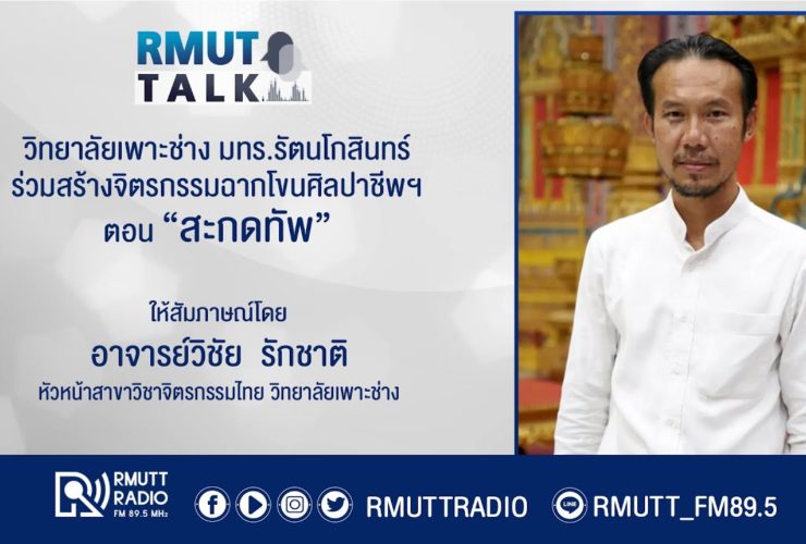 RMUT TALK l วิทยาลัยเพาะช่าง มทร.รัตนโกสินทร์ ร่วมสร้างจิตรกรรมฉากโขนศิลปาชีพฯ ตอน “สะกดทัพ” . สัมภาษณ์ อ.วิชัย รักชาติ หัวหน้าสาขาวิชาจิตรกรรมไทย วิทยาลัยเพาะช่าง อ.วิชัย รักชาติ ได้ร่วมสร้างจิตรกรรมฉากโขนศิลปาชีพฯ มายาวนานกว่า 10 ปี โดยเริ่มตั้งแต่ปี 2553 ตรงกับการแสดงโขน ตอน “นางลอย” มาจนถึงปัจจุบัน ตอน “สะกดทัพ” ซึ่งได้รับการปฏิบัติหน้าที่ในเรื่องของการเขียนฉาก บนผืนผ้าใบ ที่อยู่หลังม่ายการแสดงมีขนาด 10×20 เมตรของศูนย์วัฒนธรรม ในการเขียนฉากก็จะมีความสอดคล้องกับประติมากรรมเหตุการณ์ในเรื่องนั้นๆ ให้เชื่อมโยงกันโดยคำนึงถึงการใช้สี รวมทั้งโครงสร้างการใช้ไฟบนเวที ซึ่งทั้งหมดนี้จะมากกว่าการเขียนจิตกรรมโดยทั่วไป และในครั้งนี้มีการร่วมมือจาก นักศึกษา ศิษย์เก่า ...