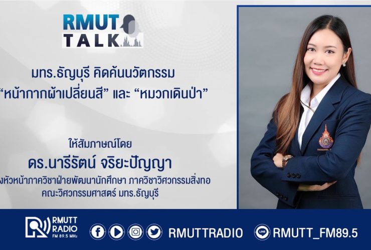RMUT TALK l มทร.ธัญบุรี คิดค้นนวัตกรรม “หน้ากากผ้าเปลี่ยนสีเมื่ออุณหภูมิสูง” และ “หมวกเดินป่า” . สัมภาษณ์ ดร.นารีรัตน์ จริยะปัญญา รองหัวหน้าภาควิชาฝ่ายพัฒนานักศึกษา ภาควิชาวิศวกรรมสิ่งทอ คณะวิศวกรรมศาสตร์ มทร.ธัญบุรี . “นวัตกรรมหน้ากากผ้าเปลี่ยนสีเมื่ออุณหภูมิสูง ป้องกันไวรัสโควิด-19 โดยแสดงผลเมื่อผู้สวมใส่มีอุณหภูมิสูง ด้วยการเปลี่ยนสีของสารเทอร์โมโครมิก เพื่อให้มีประสิทธิภาพในการป้องกันและสามารถช่วยตรวจสอบในเบื้องต้นได้ว่าผู้สวมใส่มีอาการป่วยหรือมีอุณภูมิร่างกายสูงเกิน 37.5 องศาเซลเซียสหรือไม่ โดยสารเทอร์โมโครมิกมีความสามารถในการเปลี่ยนสีตามอุณหภูมิที่กำหนด ซึ่งการทดสอบครั้งนี้ได้กำหนดให้การเปลี่ยนสีมี 3 อุณหภูมิจุดวิกฤตหรือ Melting point ประกอบไปด้วย สีน้ำตาลที่อุณหภูมิ 35 องศาเซลเซียส สีดำที่อุณหภูมิ 37 องศาเซลเซียส และสีน้ำเงินที่อุณหภูมิ 38 องศาเซลเซียส ...