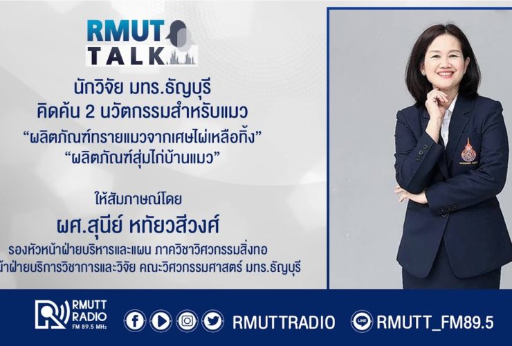 RMUT TALK l นักวิจัย มทร.ธัญบุรี คิดค้น 2 นวัตกรรมสำหรับแมว . สัมภาษณ์ ผศ.สุนีย์ หทัยวสีวงศ์ รองหัวหน้าฝ่ายบริหารและแผน ภาควิชาวิศวกรรมสิ่งทอ หัวหน้าฝ่ายบริการวิชาการและวิจัย คณะวิศวกรรมศาสตร์ มทร.ธัญบุรี “ผลิตภัณฑ์ทรายแมวจากเศษไผ่เหลือทิ้ง” ในการผลิตงานหัตกรรมของกลุ่มโอทอปต่างๆ จะมีขยะหรือของเสียส่วนหนึ่งที่เกิดขึ้นระหว่างกระบวนการมากมาย อาทิเช่น เศษไผ่ ท้องไผ่ เศษเส้นตอกที่ไม่ได้คุณภาพ เป็นต้น ผู้ประกอบการส่วนใหญ่จะกำจัดด้วยวิธีการเผา และมีผู้ประการบางส่วนนำมาทำเป็นดิน ดังที่ทราบกันว่าวิธีการกำจัดดังกล่าวจะย้อนมาส่งผลต่อมลภาวะและสุขภาพของชุมชนในระยะยาว โครงการวิจัยเรื่อง “การจัดการเศษวัสดุเหลือใช้จากกระบวนการผลิตเสื่อลำแพนมาใช้ประโยชน์ในเชิงพาณิชย์” เป็นโครงการย่อยภายใต้ชุดโครงการ “การจัดการองค์ความรู้และต่อยอดนวัตกรรมเสื่อลำแพนเพื่อขยายผลสู่การเรียนรู้ที่ยั่งยืน พื้นที่อำเภอประจันตคาม จังหวัดปราจีนบุรี” ซึ่งมีวัตถุประสงค์เพื่อศึกษาขั้นตอนการแปรรูปเศษไผ่เหลือทิ้งจากกระบวนการผลิตเสื่อลำแพนเพื่อสร้างผลิตภัณฑ์ใหม่ เป็นการต่อยอดงานวิจัยเรื่อง การจัดการเศษวัสดุเหลือใช้จากกระบวนการผลิตเสื่อลำแพนมาใช้ประโยชน์ในเชิงพาณิชย์ โดยนำกระบวนการผลิตทรายแมวจากเศษไผ่มาสร้างมูลค่า ซึ่งสูตรการผลิตเดิมค่อนข้างเหนียวและข้นส่งผลให้ ขั้นตอนการอัดเป็นเม็ดทำได้ยาก ...