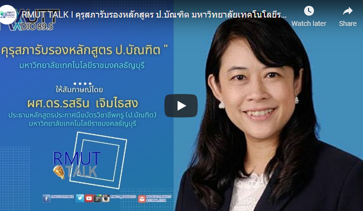 RMUT TALK I คุรุสภารับรองหลักสูตร ป.บัณฑิต มหาวิทยาลัยเทคโนโลยีราชมงคลธัญบุรี สัมภาษณ์ ผศ.ดร.รสริน เจิมไธสง ประธานหลักสูตร หลักสูตรประกาศนียบัตรวิชาชีพครู (ป. บัณฑิต) มหาวิทยาลัยเทคโนโลยีราชมงคลธัญบุรี คุรุสภาให้การรับรองหลักสูตรประกาศนียบัตรบัณฑิตวิชาชีพครู ประจำปีการศึกษา 2564 จำนวน 55 แห่ง 56 หลักสูตร การรับรองประกาศนียบัตรบัณฑิตวิชาชีพครูตามมาตรฐานวิชาชีพประจำปีการศึกษา 2564 จำนวน 55 แห่ง 56 หลักสูตรเงื่อนไขการเปิดหลักสูตรประกาศนียบัตรบัณฑิตวิชาชีพครู ประจำปีการศึกษา 2564 ดังนี้ 1. การรับนักศึกษา ต้องไม่เกินจำนวนที่ได้รับอนุญาต 2. คุณสมบัติของผู้เข้าศึกษาให้เป็นไปตามเงื่อนไขที่แต่ละสถาบันกำหนด 3. ผู้เข้ารับการศึกษาในหลักสูตรประกาศนียบัตรบัณฑิตวิชาชีพครูต้องเข้าสู่กระบวนการดำเนินการทดสอบเพื่อขอรับใบอนุญาตประกอบวิชาชีพครู ** ...