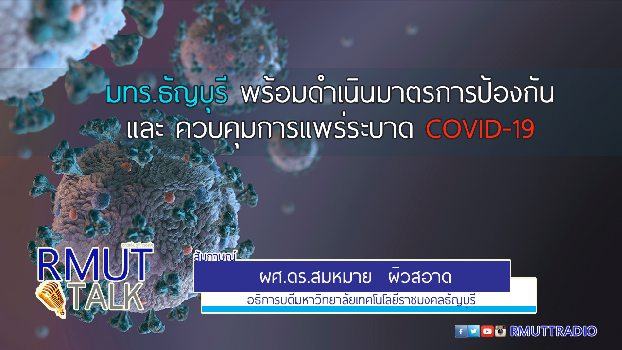 https://www.facebook.com/173993725962646/videos/352792092305184/ RMUTTALK l มทร.ธัญบุรี พร้อมดำเนินมาตรการป้องกันและควบคุมการแพร่ระบาด COVID-19 . ผศ.ดร.สมหมาย ผิวสอาด อธิการบดีมหาวิทยาลัยเทคโนโลยีราชมงคลธัญบุรี . มาตรการในการดูแลสถานการณ์การแพร่ระบาดของ Covid -19 มทร.ธัญบุรีได้มีการจัดตั้งวอลล์รูมแก้ไข และป้องกันปัญหาทั้งระบบ โดยการเรียนการสอนภาคฤดูร้อน ซึ่งจะเริ่มในเดือนเมษายนจนถึงเดือนมิถุนายน จะเป็นการการเรียนระบบออนไลน์ ส่วนบุคลากรจะจัดให้ทำงานแบบ Work from home ส่วนคนที่จำเป็นจะต้องเข้ามาปฏิบัติงานในมหาวิทยาลัยจะมีการวัดอุณหภูมิ สวมหน้ากากอนามัยก่อนเข้าอาคาร ในส่วนอาคารต่าง ๆ ได้มีการฉีดยาฆ่าเชื้อโรค ทำความสะอาดทุกวันและปิดห้องเรียนนั้นๆ จนกว่าจะเปิดภาคเรียนใหม่ ในเดือนมิถุนายน ...