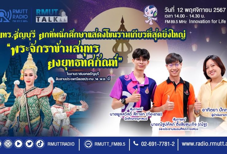 RMUT TALK l มทร.ธัญบุรี ยกทัพนักศึกษาแสดงโขนรามเกียรติ์สุดยิ่งใหญ่ “พระจักราข้ามสมุทร ยงยุทธทศกัณฑ์” ในงานราชมงคลธัญบุรี สืบสานประเพณีลอยประทง 14 พ.ย.นี้ สัมภาษณ์ นายณัฐปคัลภ์ ตั้งชัยชนะกิจ (ณัฐ) รองประธานชมรมศิลปะการแสดง นายพูลสวัสดิ์ สีทาแก (ก้องภพ) นักศึกษาครุศาสตร์ ขอเชิญชวนทุกท่านร่วมงาน “สืบสานประเพณีลอยกระทง ราชมงคลธัญบุรี” พบกับบรรยากาศสุดประทับใจที่เราตั้งใจจัดขึ้น ร่วมสักการะพระพุทธพิริยมงคล เพื่ออนุรักษ์และส่งต่อประเพณีลอยกระทง ซึ่งเปรียบเสมือนการขอขมาและขอบคุณต่อแม่น้ำ 14 พฤศจิกายน เวลา 18.00 น. กับการแสดงโขนรามเกียรติ์ ตอน พระจักราข้ามสมุทรยงยุทธทศกัณฑ์ โดยชมรมศิลปะการแสดง มทร.ธัญบุรี และเตรียมพบกับความสนุกและความบันเทิงมากมายในงาน การประกวด‟นางนพมาศราชมงคลธัญบุรี” การประกวดสร้างสรรค์ประดิษฐ์กระทง ...