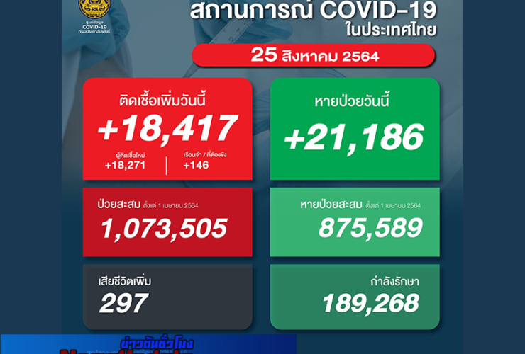 08.00 กระทรวงพาณิชย์ เผย โควิดหนัก ล็อกดาวน์หยุดก่อสร้าง ทำจดทะเบียนธุรกิจกค.ลดลง 7% เชื่อสถานการณ์ปลายปีดีขึ้น . 09.00 สมาคมผู้ค้าปลีกไทย เตรียมความพร้อมเปิดเมือง 1 กันยายน ชูมาตรการความปลอดภัยขั้นสูงสุด . 10.00 ข่าวราชมงคล // รัฐมนตรีว่าการกระทรวงการคลัง ไม่กังวลระดับหนี้สาธารณะ ชี้ ยังต่ำเมื่อเทียบกับประเทศอื่น ย้ำรัฐทบทวนเพื่อที่จะยกระดับเพดานหนี้ได้ . 11.00 ศบค.ชุดใหญ่ เตรียมหารือคลายล็อกนั่งกินในร้าน 50% ภายใต้เงื่อนไขฉีดวัคซีนแล้ว 2 เข็มหรือตรวจ ATK ทุก 3-7 วัน ขอรอฟังเงื่อนไข 27 ส.ค.นี้ . ...