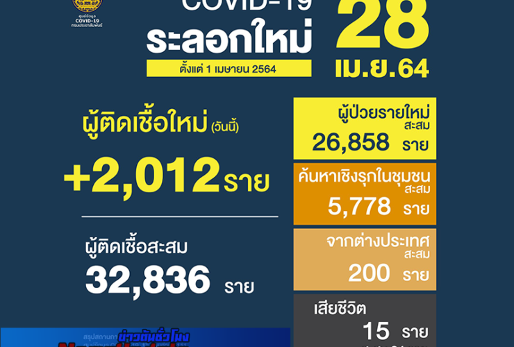 08.00 หอการค้าไทย ระดม CEO กว่า 40 บริษัท หารือแผนจัดการวัคซีนรักษาโควิด พร้อมกระจายให้เร็วที่สุด หนุนมาตรการภาครัฐเต็มที่ . 09.00 ดีอีเอส ประสาน NT สนับสนุนติดตั้งสัญญาณอินเทอร์เน็ตรพ.สนามทั่วประเทศ พร้อมประสานกสทช.อำนวยความสะดวกกับผู้ป่วย . 10.00 ข่าวราชมงคล // นายกสมาคมภัตตาคารไทย ขอสมาชิกเพิ่มความเข้มงวดสุขอนามัย หวั่นถูกสั่งปิดหากละเลยโควิด-19 ระบาดในร้านอาหาร . 11.00 อธิบดีกรมวิทยาศาสตร์การแพทย์ เตือนอย่าหลงเชื่อข่าวฉีดวัคซีนซิโนแวกแล้วภูมิคุ้มกันไม่ขึ้น . 12.00 อธิบดีกรมอนามัย แนะนำวิธีการรับ-ส่ง พัสดุ สินค้า อาหาร ให้ปลอดภัยจากโควิด -19 . 13.00 ...