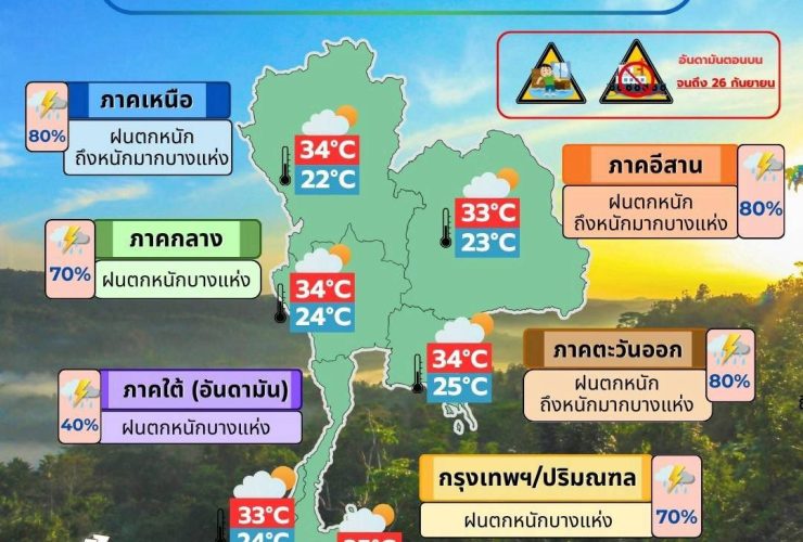 09.00 ประเทศไทยยังคงมีฝนตกหนักบางแห่ง ขอให้ประชาชนในบริเวณดังกล่าวระวังอันตรายจากฝนตกหนักและฝนที่ตกสะสม กรุงเทพและปริมณฑล มีฝนฟ้าคะนอง ร้อยละ 60 ของพื้นที่ 10.00 ข่าวราชมงคล // แผ่นดินไหวรุนแรงในภาคกลางประเทศฟิลิปปินส์ มีผู้เสียชีวิตอย่างน้อย 19 ราย จากความรุนแรง 6.9 แมกนิจูด 11.00 กพท. ออกประกาศฉบับที่ 7 ยังห้ามบินโดรนในพื้นที่ชายแดนไทย-กัมพูชา/พื้นที่ความมั่นคงถึง 15 ต.ค. นี้ ตามข้อเสนอของหน่วยงานความมั่นคง ชี้เพื่อเสริมสร้างมาตรการรักษาความปลอดภัยของประเทศ 13.00 ผู้บริหาร กทม. มีมติเห็นชอบกรอบวงเงินงบรายจ่ายเพิ่มเติมปี 69 กว่า 32,000 ล้านบาท เพื่อชำระหนี้ค่าจ้างเดินรถและค่าซ่อมบำรุงโครงการรถไฟฟ้าสายสีเขียว ส่วนต่อขยายที่ 1 และส่วนต่อขยายที่ ...