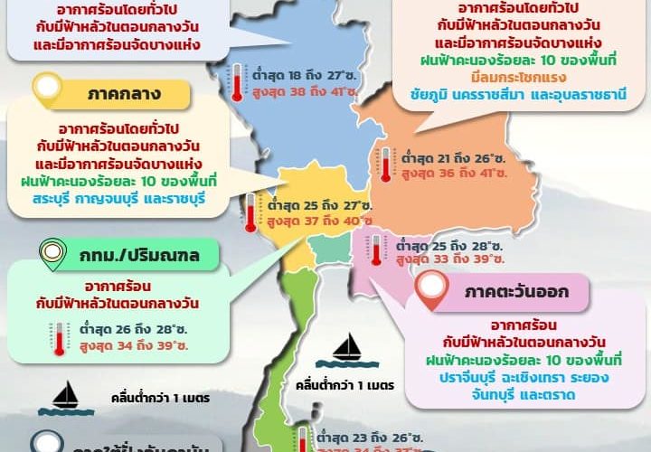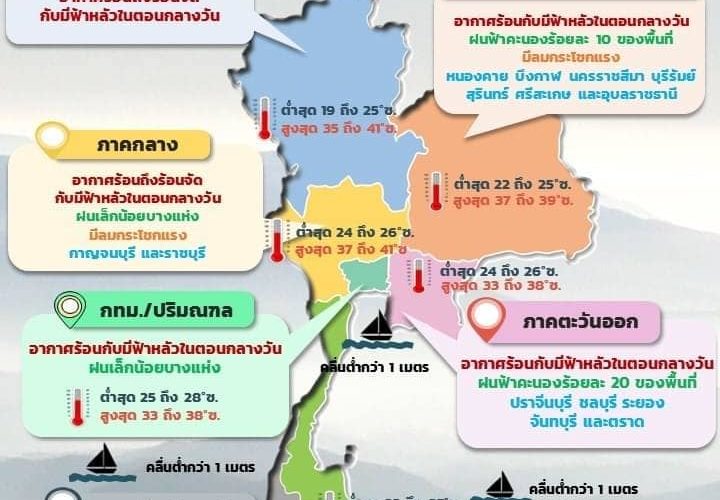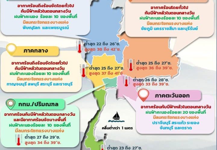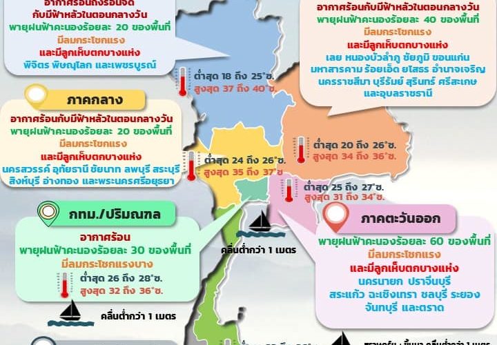 08.00 ประเทศไทยตอนบนมีฝนฟ้าคะนอง ลมกระโช ...