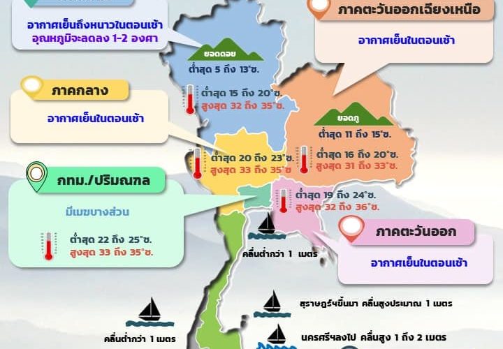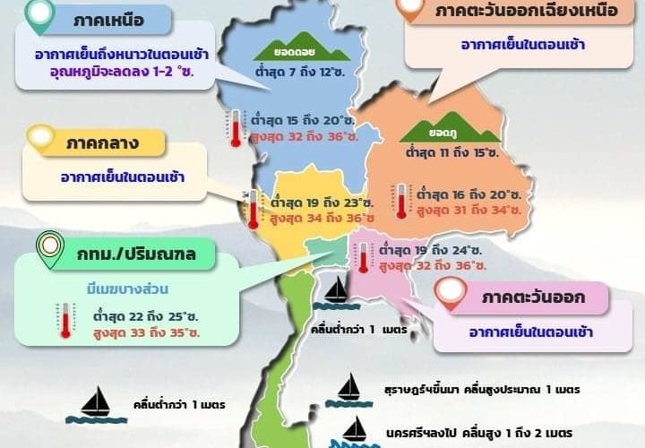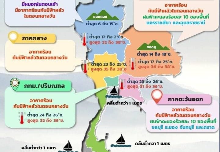 08.00 กรมอุตุฯ เผย ประเทศไทยตอนบนอุณหภูม ...
