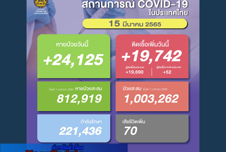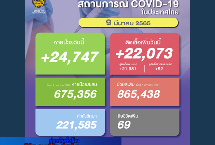 08.00 รัฐมนตรีว่าการกระทรวงสาธารณสุข เผย สธ.เร่งสนับสนุนโครงการเจอ จ่าย จบ พร้อมเร่งเพิ่มโอเปอเรเตอร์สายด่วน สปสช. แล้ว //อพวช RE97 . 10.00 ข่าวราชมงคล // ปลัดกระทรวงพาณิชย์ ประชุมคณะทำงานวอร์รูมอีกรอบวันนี้ ติดตามผลกระทบสงครามรัสเซีย-ยูเครนดันราคาสินค้า . 11.00 นายกรัฐมนตรี เตรียมประชุม ศบค. ชุดใหญ่ หารือมาตรการช่วงเทศกาลสงกรานต์ 18 มี.ค.นี้ ยืนยันไม่ห้ามจัดกิจกรรมสงกรานต์ ยังเน้นมาตรการ VUCA ฉีดวัคซีนเข็ม3 . 12.00 ครม.ไฟเขียวขยายเวลาลงทะเบียนกู้สินเชื่อสู้ภัยโควิด ผ่อนชำระนานถึง 2 ปีปลอดชำระหนี้ 6 งวดแรกช่วยพ่อค้า-แม่ค้า หาบเร่-แผงลอย-ผู้มีรายได้น้อย-อาชีพอิสระ ...