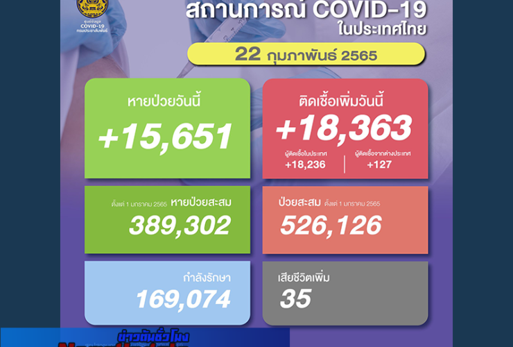 08.00 คณะกรรมการอาหารและยาของสหรัฐเลื่อนพิจารณา การใช้วัคซีนโควิด-19 ของไฟเซอร์/ไบโอเอ็นเทค กับเด็ก 6 เดือน-4 ปี ออกไป “อีกอย่างน้อย 2 เดือน” //SPOT Clubhouse หนัง . 09.00 สรท.จับตารัสเซียยูเครนใกล้ชิด มีผลกระทบการค้าโลกส่งออกไทยแน่ แต่มากน้อยแค่ไหนขึ้นอยู่กับความรุนแรงและสถานการณ์ยืดเยื้อหรือไม่ //อพวช RE67 . 10.00 ข่าวราชมงคล // รัฐบาลสิงคโปร์ให้การรับรองชั่วคราว วัคซีนโควิด-19 แบบโปรตีนซับยูนิต ของบริษัทโนวาแวกซ์ จากสหรัฐ . 11.00 กทม.แก้พฤติกรรมจอดทับทางม้าลาย เร่งขีดเส้นรอไฟแดงเพิ่ม 50 แยก //SPOT มาสคอต . ...