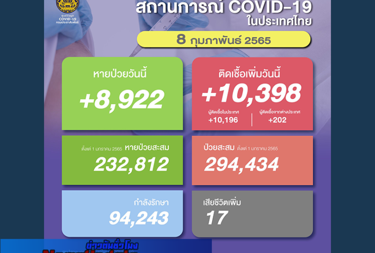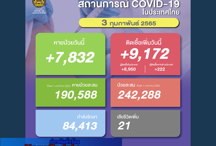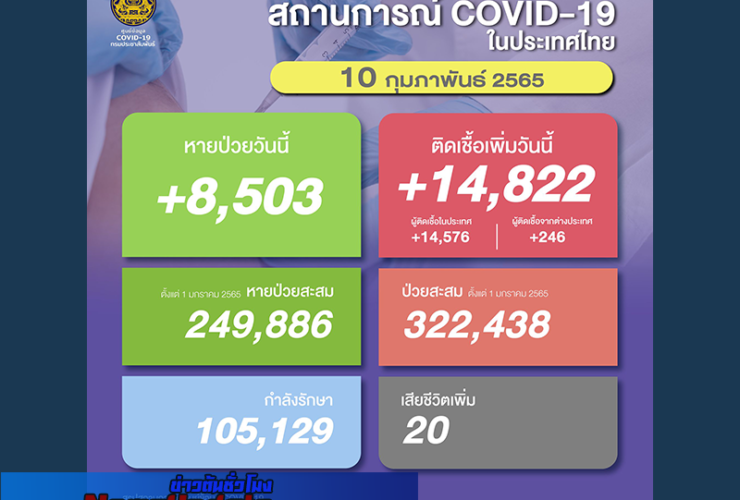 08.00 กรมวิทย์ฯ เผย โอไมครอนสายพันธุ์ BA.2 ระบาดเร็วกว่าสายพันธุ์ BA.1 ชี้ ยังระบุความรุนแรงไม่ได้ พร้อมย้ำวัคซีนเข็มกระตุ้นยังป้องกันได้ //SPOT Clubhouse เรื่องเก่า . 09.00 SME D Bank เดินหน้าพัฒนายกระดับเอสเอ็มอีไทยคลอดโปรแกรมเติมความรู้ เดือน ก.พ. 65 หนุนรวยด้วยออนไลน์ //อพวช RE63 . 10.00 ข่าวราชมงคล // ศูนย์ฉีดวัคซีนกลางบางซื่อ เริ่มฉีดวัคซีนเด็ก 5-11 ปีแล้ว วันแรกพบเด็กโตเป็นส่วนใหญ่ จัดจุดฉีดแยกจากผู้ใหญ่ชัดเจน . 11.00 ประกันสังคม แก้ไขสิทธิประโยชน์กรณีชราภาพ ‘3 ...