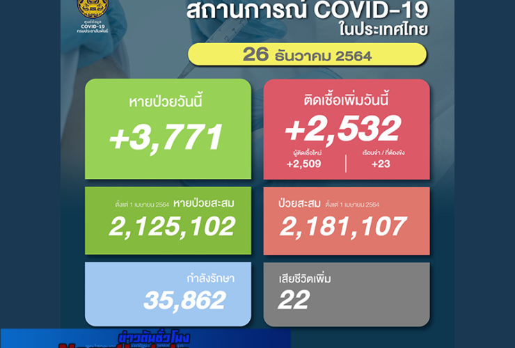 08.00 ปลัด สธ. ชี้แจงหลังปีใหม่อาจติดโควิด 19 ถึง 3 หมื่นคน เป็นกรณีไม่ร่วมกันป้องกันการควบคุมโรค . 09.00 กทม.ขยายเวลาให้ประชาชนนั่งดื่มในร้านได้ถึง 23.00 น. ถึงวันที่ 15 ม.ค.2565 //PR อพวช103 . 10.00 ข่าวราชมงคล // ครม.อนุมัติยกเว้นค่าธรรมเนียมรายปีให้คลังสินค้าทัณฑ์บน โรงพักสินค้า เขตปลอดอากรและผู้ได้รับใบอนุญาตประกอบกิจการในเขตปลอดอากรออกไปอีก 1 ปี . 11.00 กระทรวงพาณิชย์ ออกตรวจห้างร้านต่อเนื่อง พร้อมเผยข้อควรสังเกตในการเลือกซื้อสินค้าและกระเช้าของขวัญ . 12.00 กระทรวงอุตสาหกรรม ขอความร่วมมือสถานประกอบการแจ้งพนักงานให้ปฏิบัติตามมาตรการป้องกันโควิด-19 ในช่วงเทศกาลปีใหม่ . 13.00 ...