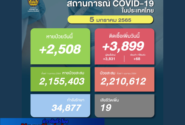 08.00 กระทรวงแรงงานหวั่น โอไมครอนกระจายแคมป์ก่อสร้างส่งเจ้าหน้าที่ตรวจสอบ แนะนำเฝ้าระวังการแพร่ระบาด . 09.00 นายก ฯ ห่วงราคาหมูแพงกระทบประชาชน สั่ง กษ.-พณ.ร่วมแก้ปัญหาด่วน //PR อพวช115 . 10.00 ข่าวราชมงคล // ศบค. พบผู้ป่วยโควิดสายพันธุ์โอไมครอนเพิ่มขึ้นเป็น 20.92% รวม 2,338 ราย กระจาย 55 จังหวัด ขณะ เดลต้า 78.91 . 11.00 ครม.เห็นชอบปรับปรุงแผนการบริหารหนี้สาธารณะ ปรับปรุงแผนการก่อหนี้ใหม่เพิ่ม 20,700 ล้านบาท รวม 1.36 ล้านล้านบาท เพื่อเสริมสภาพคล่องทางการเงิน . ...