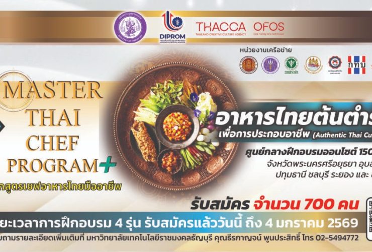 มหาวิทยาลัยเทคโนโลยีราชมงคลธัญบุรี (มทร.ธัญบุรี) ร่วมกับ กรมส่งเสริมอุตสาหกรรม กระทรวงอุตสาหกรรม สำนักงานกองทุนหมู่บ้าน และชุมชนเมืองแห่งชาติ จัดกิจกรรมฝึกอบรมหลักสูตรเชฟอาหารไทยมืออาชีพ (Master Thai Chef Program) อาหารไทยต้นตำรับเพื่อการประกอบอาชีพ (Authentic Thai Cuisine) ภายใต้โครงการส่งเสริมซอฟต์พาวเวอร์สาขาอาหาร เพื่อสร้างงาน สร้างรายได้ และยกระดับเศรษฐกิจสร้างสรรค์ของประเทศ โครงการนี้จะจัดขึ้นระหว่างเดือนกันยายน 2568 ถึง กุมภาพันธ์ 2569 รับสมัครตั้งแต่วันนี้ ถึง วันที่ 4 มกราคม 2569 จำนวน 700 คน โดยมีการอบรมครอบคลุมทั้งภาคทฤษฎีและปฏิบัติ รวมกว่า 242 ชั่วโมง แบ่งเป็นการเรียนออนไลน์ 92 ...