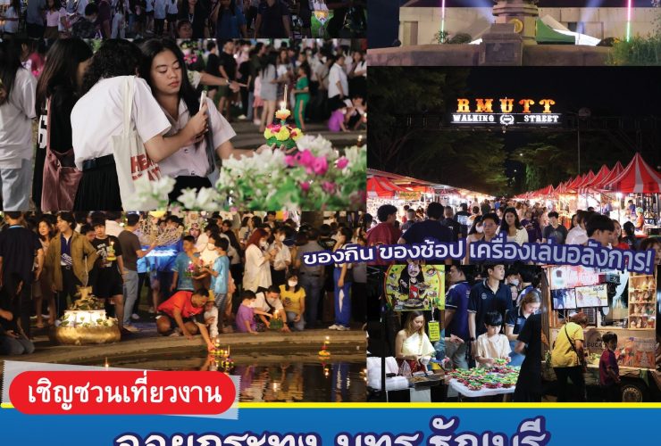 สำนักจัดการทรัพย์สิน มหาวิทยาลัยเทคโนโลยีราชมงคลธัญบุรี (มทร.ธัญบุรี) ขอเชิญชวนผู้ที่สนใจเข้าร่วมงานสืบสานประเพณีลอยกระทง และ สักการะพระพุทธพิริยมงคล ที่หอพระพุทธพิริยมงคล และองค์เสด็จพ่อรัชกาลที่ 5 ประจำปี 2568 ระหว่างวันที่ 1 – 6 พฤศจิกายน ณ มหาวิทยาลัยเทคโนโลยีราชมงคลธัญบุรี อ. คลองหก จ. ปทุมธานี . ภายในงานจะได้พบกับกิจกรรมการประกวดนางนพมาศ ถนนคนเดิน RMUTT Walking Street เครื่องเล่นสวนสนุก มหกรรมสินค้าร้านดังจากTikTok และ สนุกสุดมันส์ไปกับวงดนตรีนักศึกษา RMUTT Music Festival 2025 . ติดตามข้อมูลเพิ่มเติมได้ที่ Facebook : ...