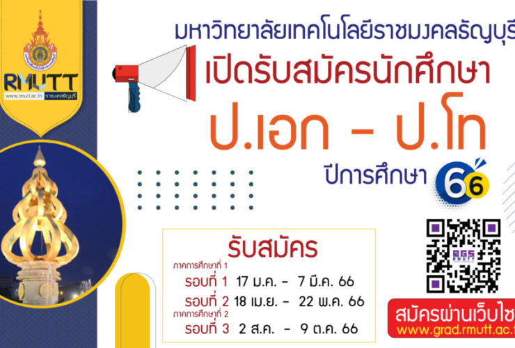 มหาวิทยาลัยเทคโนโลยีราชมงคลธัญบุรี เปิดรับสมัครนักศึกษาเข้าศึกษาต่อระดับปริญญาเอก – ปริญญาโท ปีการศึกษา 2566 โดยระดับปริญญาเอก เปิดรับคณะวิศวกรรมศาสตร์ คณะครุศาสตร์อุตสาหกรรม คณะบริหารธุรกิจ คณะวิทยาศาสตร์และเทคโนโลยี คณะเทคโนโลยีสื่อสารมวลชนและคณะศิลปศาสตร์ . ระดับปริญญาโท เปิดรับคณะวิศวกรรมศาสตร์ คณะครุศาสตร์อุตสาหกรรม คณะบริหารธุรกิจ คณะวิทยาศาสตร์และเทคโนโลยี คณะเทคโนโลยีคหกรรมศาสตร์ คณะศิลปกรรมศาสตร์ คณะเทคโนโลยีการเกษตร คณะเทคโนโลยีสื่อสารมวลชน คณะการแพทย์บูรณาการและคณะศิลปศาสตร์ . รับสมัครรอบที่ 1 วันที่ 17 ม.ค. – 7 มี.ค.2566 รอบที่ 2 วันที่ 18 เม.ย. – 22 พ.ค.2566 ...