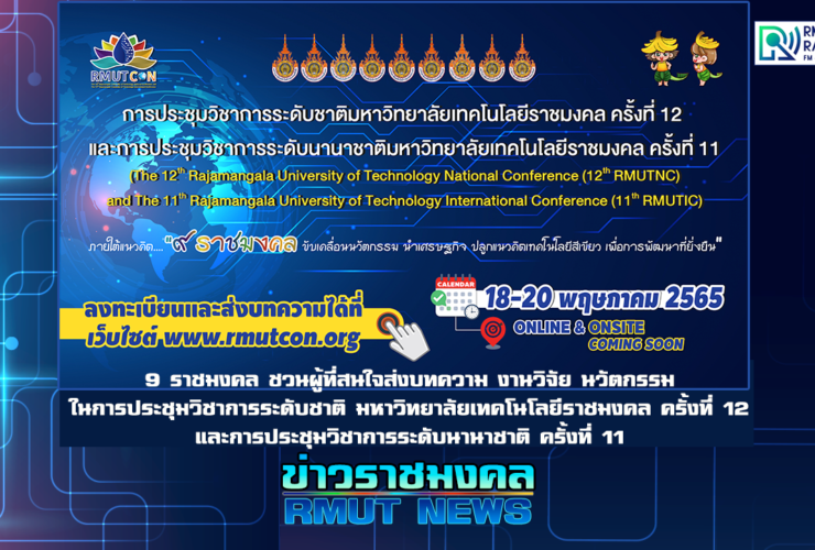 มหาวิทยาลัยเทคโนโลยีราชมงคลทั้ง 9 แห่ง เตรียมจัดการประชุมวิชาการระดับชาติมหาวิทยาลัยเทคโนโลยีราชมงคล ครั้งที่ 12 การประชุมวิชาการระดับนานาชาติมหาวิทยาลัยเทคโนโลยีราชมงคล ครั้งที่ 11 และการประกวดสิ่งประดิษฐ์และนวัตกรรมราชมงคล ครั้งที่ 4 ภายใต้แนวคิด ๙ ราชมงคลขับเคลื่อนนวัตกรรม นำเศรษฐกิจปลูกแนวคิดเทคโนโลยีสีเขียวเพื่อการพัฒนาที่ยั่งยืน” (RMUT Driving toward Innovation, Economy and Green Technology for Sustainable Development) ระหว่างวันที่ 18 – 20 พฤษภาคม 2565 ในรูปแบบ online และ onsite จึงขอเชิญชวนผู้ที่สนใจส่งบทความ งานวิจัย สิ่งประดิษฐ์และนวัตกรรม ...