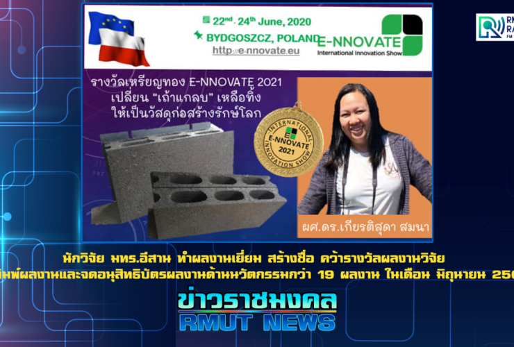 รองศาสตราจารย์ ดร.โฆษิต ศรีภูธร รักษาราชการแทนอธิการบดี มหาวิทยาลัยเทคโนโลยีราชมงคลอีสาน เปิดเผยว่า ในเดือนมิถุนายน นักวิจัยมหาวิทยาลัยเทคโนโลยีราชมงคลอีสาน ภายใต้ กระทรวงการอุดมศึกษา วิทยาศาสตร์ วิจัยและนวัตกรรม หรือ อว. ทำผลงานเยี่ยมคว้ารางวัลจากการนำเสนอผลงานวิจัยระดับชาติและนานาชาติ จำนวน 3 ผลงาน อาทิเช่น รางวัลเหรียญทอง ด้านงานวิจัยที่เป็นมิตรกับสิ่งแวดล้อม จากการประกวดผลงานสิ่งประดิษฐ์และนวัตกรรมออนไลน์ ระดับนานาชาติ ในงาน E-INNOVATE 2021 – International Invention & Innovation Show ณ สาธารณรัฐโปแลนด์, รางวัล การนำเสนองานวิจัย ระดับดี และ รางวัลในการนำเสนอผลงานวิจัย ประเภทการนำเสนอด้วยโปสเตอร์ ...