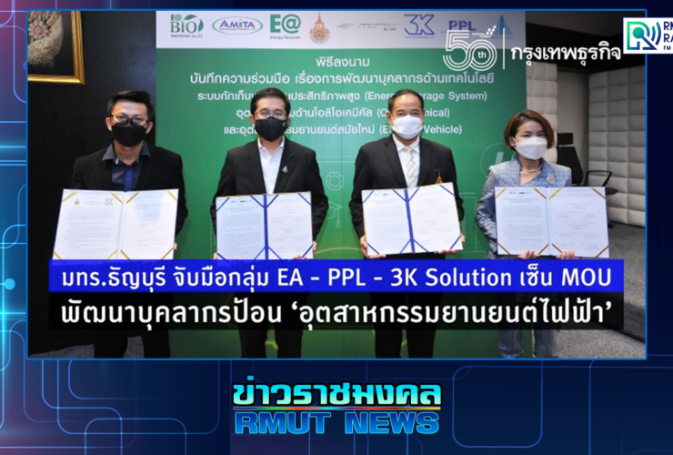 กลุ่ม บมจ.พลังงานบริสุทธิ์ (EA) เซ็นลงนามบันทึกข้อตกความร่วมมือกันระหว่าง มหาวิทยาลัยเทคโนโลยีราชมงคลธัญบุรี (RMUTT) บริษัท ดับเบิ้ลพี แลนด์ จำกัดหรือ (PPL) บริษัท 3 เค โซลูชั่น เมเนจเมนท์ ในโครงการการพัฒนาบุคลากรด้านเทคโนโลยีระบบกักเก็บพลังงานประสิทธิภาพสูง อุตสาหกรรมด้านโอลิโอเคมีคัล และอุตสาหกรรมยานยนต์สมัยใหม่ โดย ผู้ช่วยศาสตราจารย์ ดร.สมหมาย ผิวสอาด อธิการบดีมหาวิทยาลัยเทคโนโลยีราชมงคลธัญบุรี (มทร.ธัญบุรี) เปิดเผยว่า มทร.ธัญบุรี มีความยินดีเป็นอย่างยิ่งที่ได้ทำบันทึกข้อตกลงร่วมกันในครั้งนี้ ในฐานะสถาบันการศึกษาถือเป็นเรื่องที่ดีอย่างยิ่ง โดยเฉพาะการยกระดับความรู้ความสามารถของนักศึกษาในระหว่างที่กำลังศึกษาอยู่ เพื่อเตรียมความพร้อมอย่างมืออาชีพ ทั้งด้านประสบการณ์ ความรู้ทางวิชาการและวิชาชีพ ไม่เพียงแต่การเรียนรู้ในห้องเรียนอย่างเดียว แต่จะเป็นการเติมเต็มความรู้จากสถานประกอบการจริง ที่นับว่าเป็นการอัพเดตความรู้ที่ทันสมัยอย่างยิ่ง ช่วยให้มีความพร้อมก่อนที่จะเข้าสู่โลกการทำงานหลังสำเร็จการศึกษา . สำหรับความร่วมมือในครั้งนี้ จะช่วยพัฒนาบุคคลากรและเชื่อมโยงการศึกษาระดับอุดมศึกษาทั้งด้านทฤษฎีและการฝึกอบรม ...