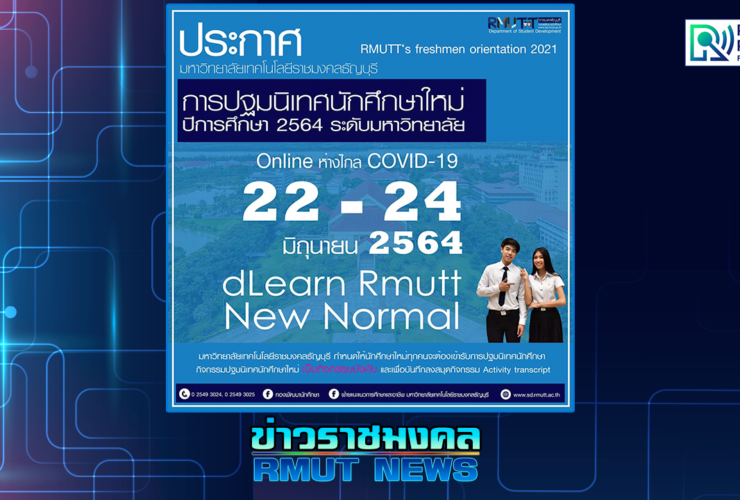 มหาวิทยาลัยเทคโนโลยีราชมงคลธัญบุรี ได้จัดการปฐมนิเทศนักศึกษาใหม่ ปีการศึกษา 2564 ในรูปแบบออนไลน์ ห่างไกล โควิด-19 แบบ new normal ตั้งแต่วันที่ 22-24 มิถุนายน 2564 โดยกิจกรรมนี้เป็นกิจกรรมบังคับ โดย เช้า-บ่าย วันอังคารที่ 22 มิถุนายน 2564 เป็นการปฐมนิเทศนักศึกษาใหม่ ของคณะบริหารธุรกิจ,คณะเทคโนโลยีการเกษตร,คณะสถาปัตยกรรมและวิทยาลัยการแพทย์แผนไทย เช้า-บ่าย วันพุธที่ 23 มิถุนายน 2564 2564 เป็นการปฐมนิเทศนักศึกษาใหม่ ของคณะครุศาสตร์อุตสาหกรรม,คณะเทคโนโลยีคหกรรมศาสตร์,คณะเทคโนโลยีสื่อสารมวลชน,คณะวิทยาศาสตร์และเทคโนโลยีและศิลปกรรมศาสตร์ เช้า-บ่าย วันพฤหัสบดี ที่ 24 มิถุนายน 2564 เป็นการปฐมนิเทศนักศึกษาใหม่ ของคณะวิศวกรรมศาสตร์,คณะศิลปะศาสตร์และคณะพยาบาลศาสตร์ นักศึกษาใหม่เข้ารับการปฐมนิเทศ ...