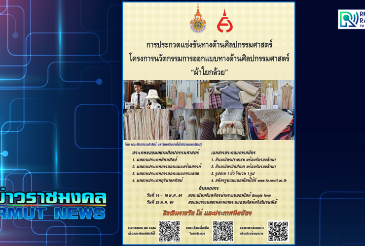 คณะศิลปกรรมศาสตร์ มหาวิทยาลัยเทคโนโลยีราชมงคลธัญบุรี ขอเชิญนักศึกษาระดับปริญญาตรีที่สนใจส่งผลงานเข้าร่วมการประกวดใน “โครงการนวัตกรรมการออกแบบทางด้านศิลปกรรมศาสตร์ ผ้าใยกล้วย” ชิงเงินรางวัล พร้อมโล่รางวัล และประกาศนียบัตร ประเภทของผลงานศิลปกรรมศาสตร์ ผลงานประเภททัศนศิลป์ ได้แก่ จิตรกรรม ประติมากรรม ภาพพิมพ์ ศิลปะไทย สื่อผสม ผลงานประเภทการออกแบบสร้างสรรค์ ได้แก่ ออกแบบสื่อนิเทศน์ ออกแบบผลิตภัณฑ์ไลฟ์สไตท์ ออกแบบแฟชั่น ออกแบบผลิตภัณฑ์ร่วมสมัย ผลงานประเภทการออกแบบการแสดง ได้แก่ นาฏศิลป์ไทย นาฏศิลป์สากล นาฏศิลป์พื้นบ้าน/พื้นเมือง ผลงานประเภทดุริยางคศิลป์ ได้แก่ บทประพันธ์เพลงประเภทต่าง ๆ และนวัตกรรมสร้างสรรค์ทางดนตรี รางวัลการประกวดทั้ง 4 ประเภท ได้แก่ รางวัลชนะเลิศ ได้รับเงินจำนวน 5,000 บาท ...
