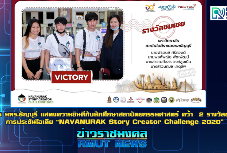 ผศ.ดร สมหมาย ผิวสอาด อธิการบดีมหาวิทยาลัยเทคโนโลยีราชมงคลธัญบุรี ได้ร่วมแสดงความยินดีกับนักศึกษา สาขาสถาปัตยกรรม และสาขาสถาปัตยกรรมภายใน คณะสถาปัตยกรรมศาสตร์ จากรางวัลประชันไอเดีย “ NAVANURAK Story Creator Challenge 2020 ” การแข่งขันเล่าเรื่องผ่านสื่อดิจิทัล ในรูปแบบออนไลน์ (เนคเทค สวทช.หรือสำนักงานพัฒนาวิทยาศาสตร์และเทคโนโลยีแห่งชาติ ) โดยได้นักศึกษาสาขาสถาปัตยกรรมภายใน แบ่งเป็น 2 ทีม ได้รับรางวัลชมเชย จำนวน 2 รางวัล ได้แก่ 1.ผลงาน “ สืบสานภูมิปัญญา พริกตะเกลือ” 2.ผลงาน “เสน่ห์สีกก” และนักศึกษาสาขาสถาปัตยกรรม ได้รับรางวัลพิเศษ จำนวน 1 ...